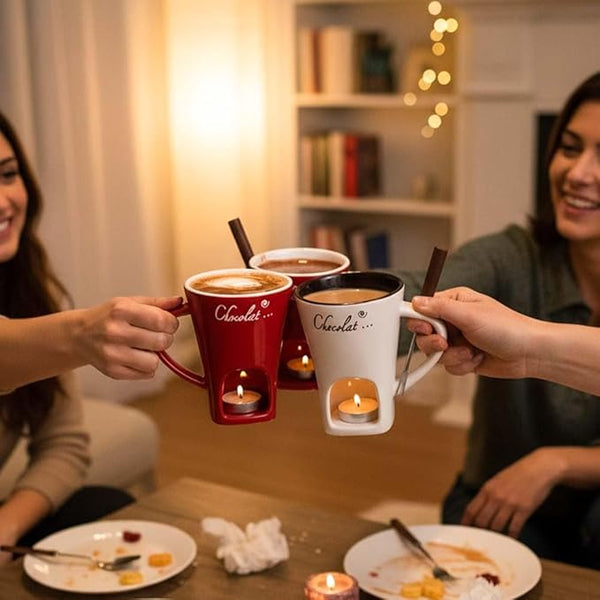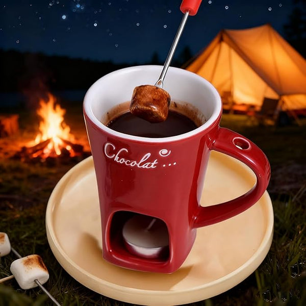 CozyChoco: Fondue-Tasse – Mini Schmelztopf für süße & herzhafte Dips | Inkl. Gabel | Geschenk für Mama & Papa.